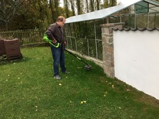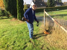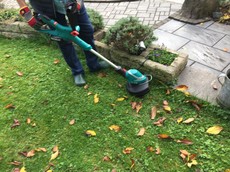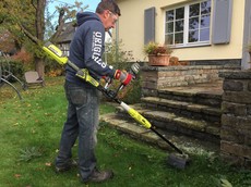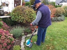 Dieser Trimmer von Bosch ist mit einem Li-Ionen Akku mit einer Leistung von 18 Volt, 45 Wattstunden und 2,5 Amperstunden ausgestattet. Die Ladedauer des Akkus beträgt 90 Minuten. Der Trimmer hat einen Schnittkreis von 26 cm und gehört mit einem Gewicht von knapp 2,5 Kilo zu den Leichtgewichten im Test. Unser Tester ist mit der Leistung der Bosch-Sense zur Bereinigung der Wegränder und Rasenkanten zufrieden.