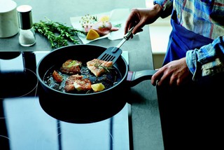 Die WMF Pfanne PermaDur Premium wird dank des neuen ThermoIndicators zu einem ganz besonderen Küchenhelfer. Die Manschette zwischen dem Pfannenstiel und dem Außenkörper verfärbt sich dank ihrer thermochromen Beschichtung bei Erreichen der optimalen Brattemperatur grün. Und wenn die Pfanne bereits zu heiß ist, wechselt sie die Farbe zu rot. So schonen Sie nicht nur Ihr Essen, sondern auch Ihren Stromzähler. Die Pfanne besteht aus Aluminium und ist robust, kratzfest und sehr langlebig. Sie ist außerdem antihaftbeschichtet und leicht zu reinigen.