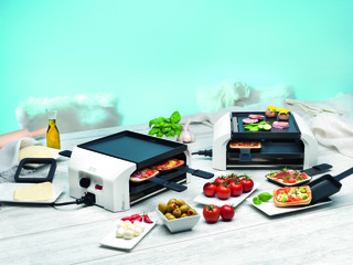 Der Stöckli Pizzagrill Fourfour ist perfekt für gemütliche Abende mit der Familie oder Freunden, denn er zielt auf das Kochen und Backen am Tisch ab. Mit ihm können Sie ganz einfach Mini-Pizzas zubereiten. Mit dem mitgelieferten Teigausstecher können Sie zunächst kleine Pizza-Teiglinge in der Küche ausstechen und sie dann am Tisch nach Ihren Wünschen belegen. Es passen vier der antihaftbeschichteten Pfännchen in einen Grill. Aber keine Sorge: wenn Ihnen das zu wenig ist, können Sie mit Hilfe eines Verbindungskabels ein weiteres Gerät anschließen. Um die individuell benötigte Backtemperatur zu erreichen, können Sie aber weiterhin beide Geräte unabhängig voneinander einstellen. Dank der Ober- und Unterhitze bekommen Sie krossen Pizzaboden und es kommt nicht zu einem Hitzestau. Auch die Grillpatte ist antihaftbeschichtet und leicht abfallend, so dass flüssiges Fett in den seitlichen Saftkanal abfließen und später einfach entfernt werden kann.