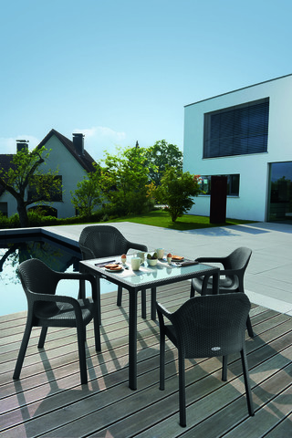 Eine moderne Optik haben auch die Stapelstühle mit Flechtstruktur in granit oder rot von Lechuza. Durch das Geflecht sind die Stühle luftdurchlässig und sind so besonders an heißen Tagen eine angenehme Sitzgelegenheit. Die Möbel sind ebenfalls robust und witterungsbeständig gegen UV-Strahlung und Frost - damit Sie auch in den kommenden Jahren Freude an den Gartenstühlen haben.