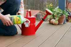 Witterungsbedingt bilden sich an Holzterrassen und Gartenbänken mit der Zeit oft grüne Beläge. Dabei handelt es sich um Algen, die besonders feuchtes Wetter lieben. Doch keine Sorge, dieser Schönheitsfehler lässt sich leicht bereinigen, zum Beispiel mit GrünbelagsFrei von Neudorff. Dazu einfach die Beläge gründlich mit dem Konzentrat einsprühen und trockene Rückstände abbürsten. So werden selbst Gartenstühle aus Kunststoff wieder sauber. Das Mittel enthält Nonansäure, einen Wirkstoff, der auch in der Natur vorkommt, und ist biologisch abbaubar.