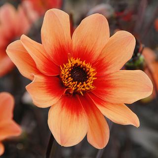 In einer ebenso aufregenden Farbe zeigen sich auch die Blüten der Dahlie 'Happy Single Kiss'. Sie leuchten wie glimmende Glut und haben doch eine subtile, fast schon coole Ausstrahlung.