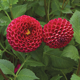 Eine weitere Dahlienvariante sind die Pompondahlien. Ihre Blütenblätter entfalten sich nicht ganz, sondern bilden leicht eingerollt kugelförmige Blüten. 'Cornell' ist eine geradezu formvollendete Pompondahlie. Mit ihrer rubinroten Farbe wirkt sie edel, grazil und strahlt gleichzeitig Lebenskraft aus. „Als Gartenpflanze eignet sie sich fantastisch: Sie bekommt so viele Blüten, dass Sie ruhig ab und zu ein paar für Ihre Vase auf dem Küchentisch abschneiden können", so van der Veek.