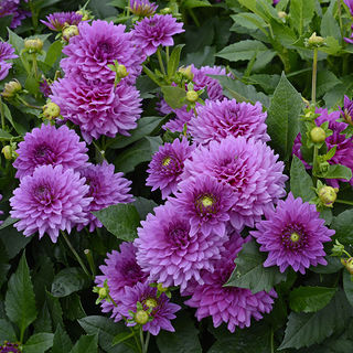 Im Sommer entsteht so ein einzigartiger Blütenreigen, der vor lauter Farbenpacht zu leuchten scheint. Weitere Gestaltungsideen sind in Gartenbüchern, in Blogs, aber auch in öffentlich zugänglichen Gärten, die ganz den Dahlien gewidmet sind, zu finden. Wer keinen Platz für ein großes Dahlienbeet hat, kann sie auch im Topf kultivieren. Besonders geeignet ist hierfür, die Dahlie 'Claudette'. Van der Veek: „Sie ist ein echter Tausendsassa, der schon viele Auszeichnungen als beste Topfpflanze bekommen hat - meiner Meinung nach völlig zu Recht. Denn 'Claudette' trägt unzählige Blüten mit einer eindrucksvollen violetten Farbe, wächst dabei aber nur 40 bis 60 Zentimeter hoch - ein toller Blickfang auf Balkon und Terrasse."