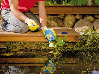 Die richtige Pflanzenauswahl und ein Teichfilter sollte den Teich eigentlich rein und klar halten. Sollte das Gewässer aber doch einmal aus der Balance geraten, bilden sich Algen oft rasend schnell. In diesem Fall kann man dem Teich mit Algiziden auf die Sprünge helfen.