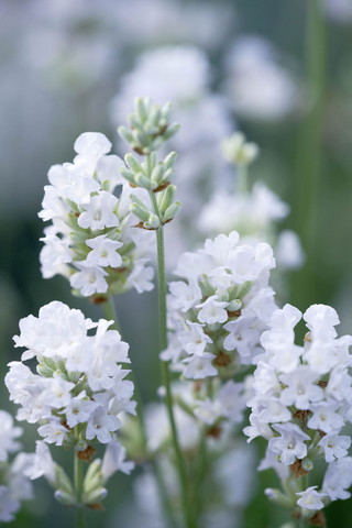 Wer über keinen Garten verfügt, kann den Halbstrauch auch in Töpfen und Kübeln kultivieren. Gerade Balkone lassen sich mit Lavendel in kleine Paradiese verwandeln. Ideal sind die kleinwachsenden Sorten des englischen Downderry Sortiments. Die ‘Little Lady‘ legt mit ihren gerade einmal 45 Zentimetern Höhe selbst auf minimaler Fläche einen großen Auftritt hin. Ihre Blüten leuchten in einem hellen, pastelligen Violett - so ganz anders, als das typische Lila, das wir direkt vor Augen haben, wenn wir an Lavendel denken. Auch die ‘Arctic Snow‘ eignet sich wunderbar für einen Topfgarten und zieht von Juni bis August mit einem strahlenden Weiß zwischen grau-grünem Laub in den Bann. Wer es etwas dunkler mag, dem sei die Sorte ‘Peter Pan‘ empfohlen. Dieser Lavendel bildet Blüten in intensivem Lila aus. Kombiniert man ihn mit Kräutern wie Thymian, Rosmarin oder Salbei, ist das mediterrane Feeling auf dem Balkon perfekt.