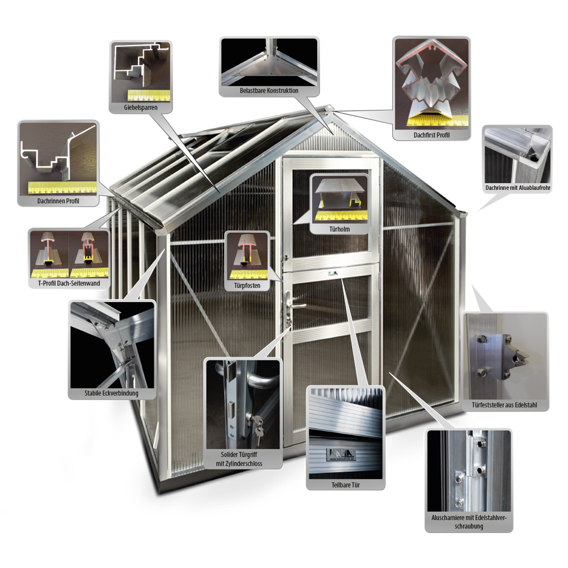 Beginnen Sie zuerst mit der geeigneten Standortsuche. Haben Sie vor, ein Glashaus aufzustellen, dann planen Sie den Standort am besten in Nord-Süd-Richtung. Denn dann sorgt die Morgen- und die Nachmittagssonne für ideale Temperaturen, um einen Wärmeausgleich im Glashaus zu gewährleisten. Treibhäuser aus Doppelstegplatten stellen Sie in Ost-West-Richtung auf, sodass die Breitseite gen Süden zeigt. Auf diese Art wirkt die längste Einstrahlungszeit auf das Gewächshaus ein. Ein windstiller Ort unterstützt ebenfalls diesen Effekt. Trotzdem sollte ausreichend Luftzirkulation und der Anschluss eines Bewässerungssystems möglich sein.